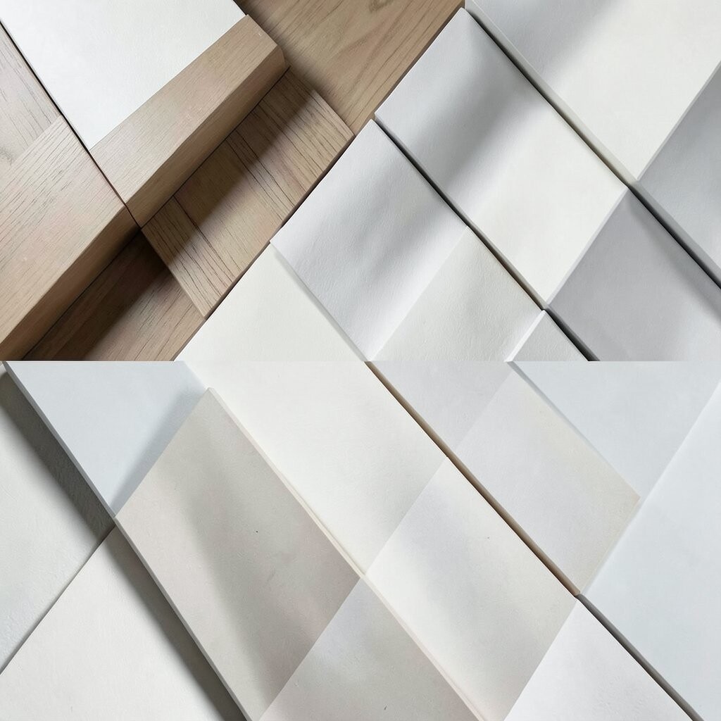 This idea is great for spa-style rooms, calm corners, and soft fashion prints. It feels unique because the shapes are simple, but the stacking makes them feel thoughtful and balanced.