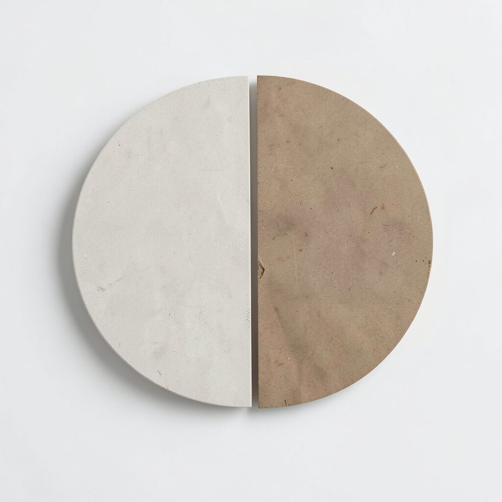 Split circle halves give a simple shape a cool new look. When a circle is cut, shifted, or layered, it suddenly feels more modern and fresh.