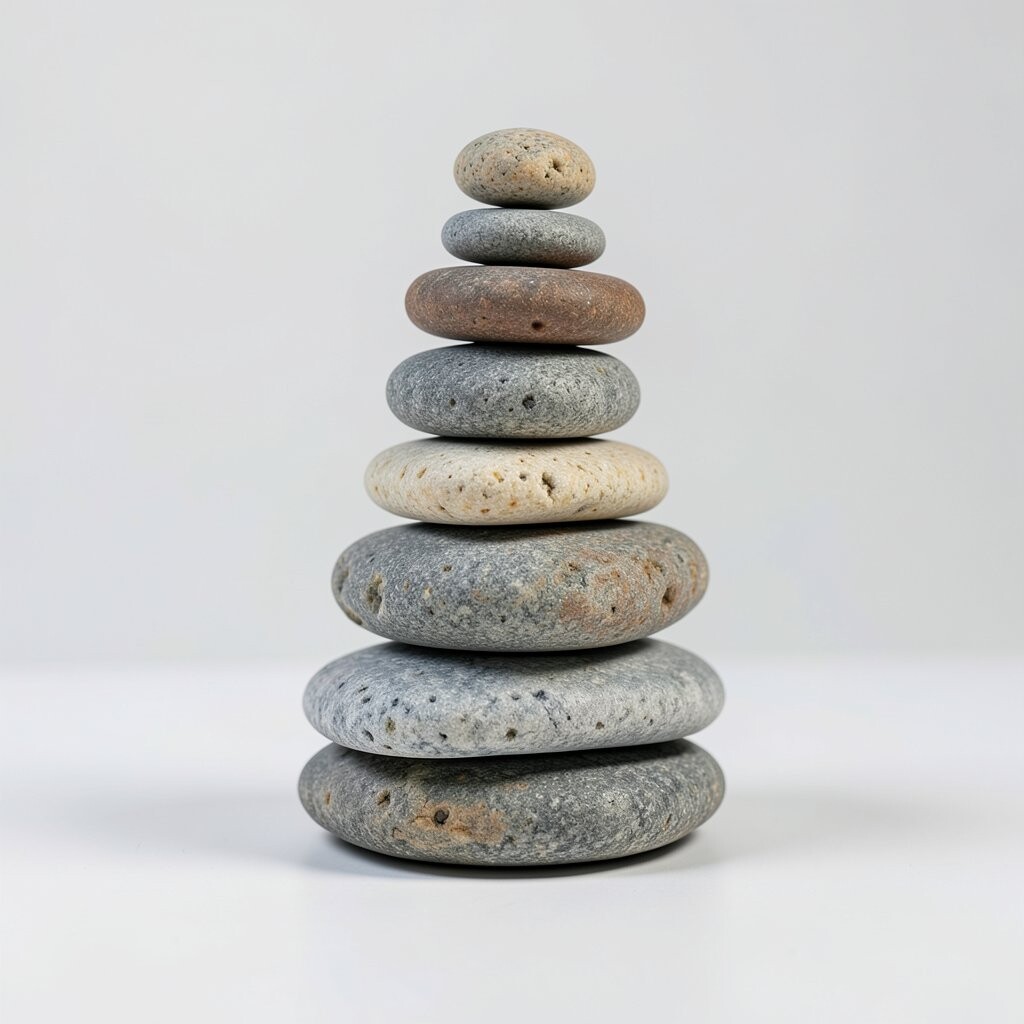 Stacked pebble shapes bring a calm, earthy feeling. They look like smooth stones piled in a careful, pretty way.