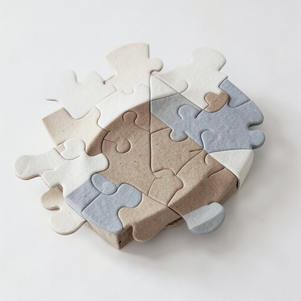 Puzzle piece abstractions feel clever and playful. They use shapes that fit together, but not always in a perfect way, which gives them a fresh look.
