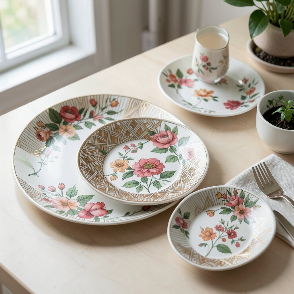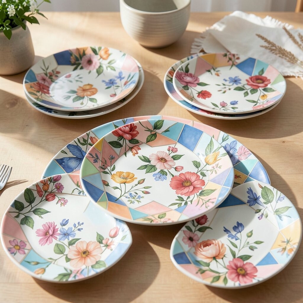 For those who love a modern twist, these plates combine geometric patterns with floral motifs. They’re trendy yet timeless.