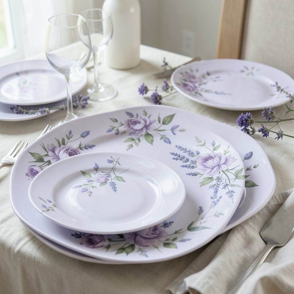 Lavender plates offer a soft, ethereal beauty. Their calming hue makes them ideal for relaxing meals.