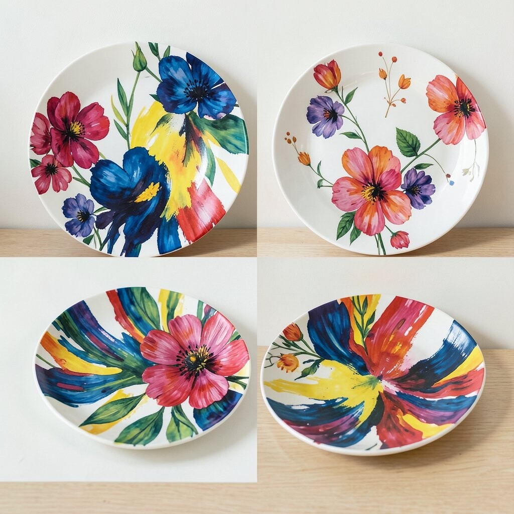 For those who love making a statement, these plates feature abstract floral designs. They’re bold, colorful, and full of personality.