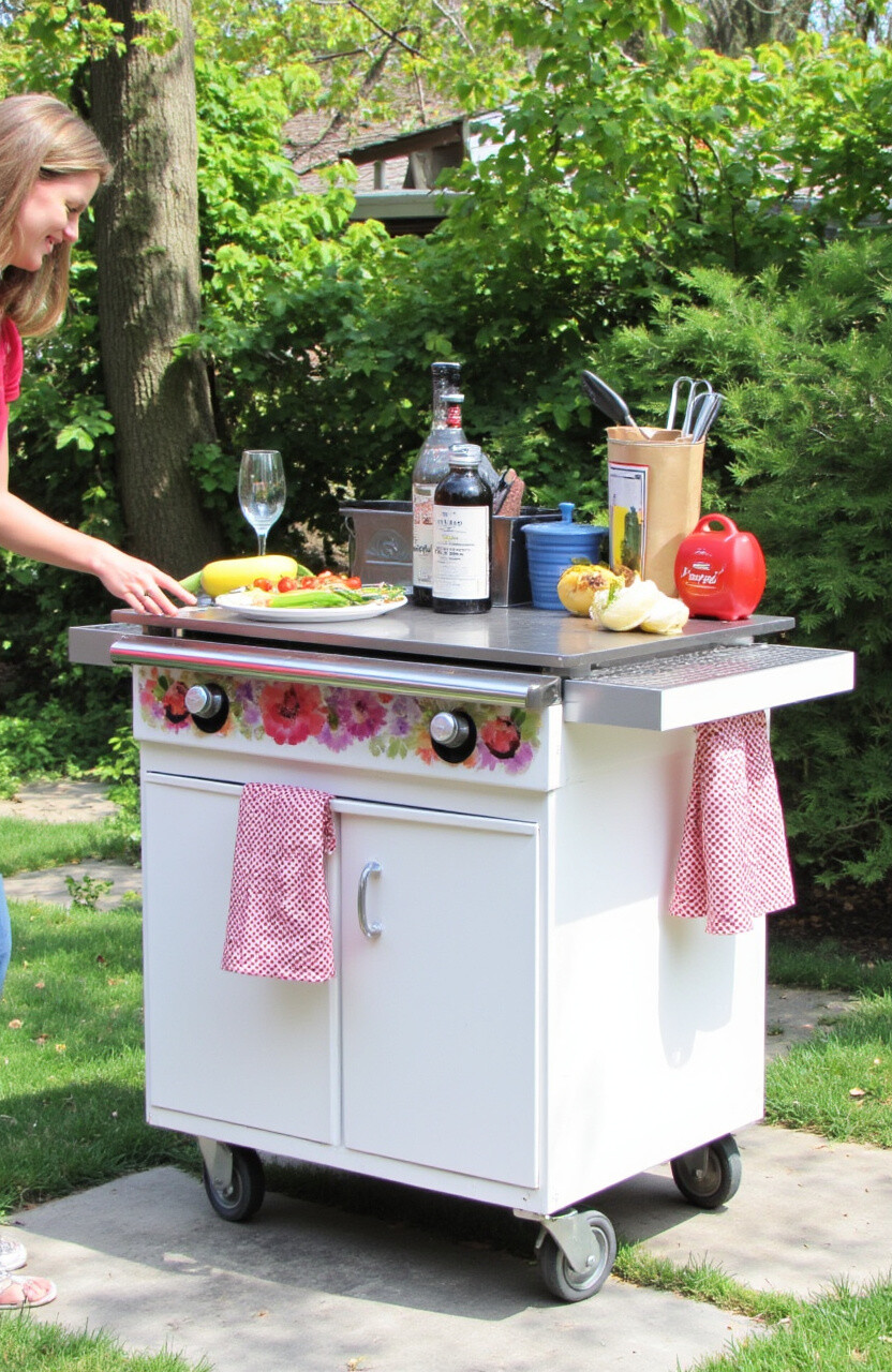 Personalize with bright paint or decals. The trend of multi-functional furniture is popular. It’s affordable and enhances any outdoor cooking experience.