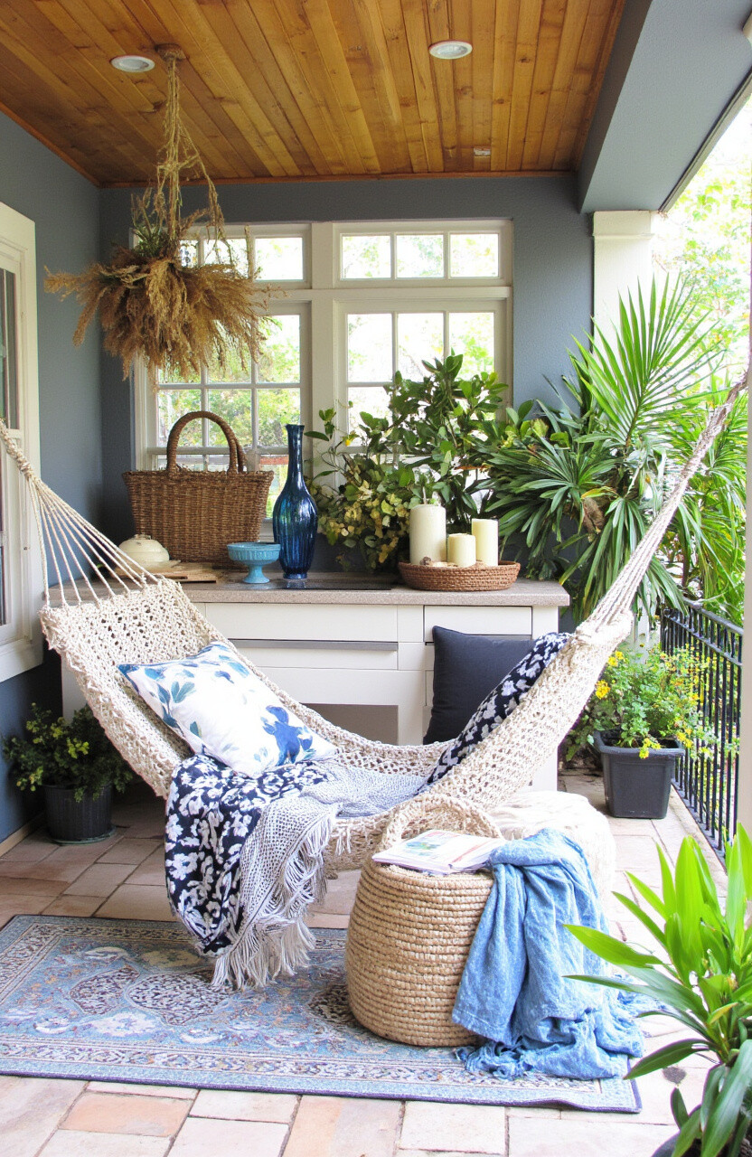 A hammock creates a relaxing spot in your backyard kitchen. It’s perfect for lounging after a meal or enjoying a book.
