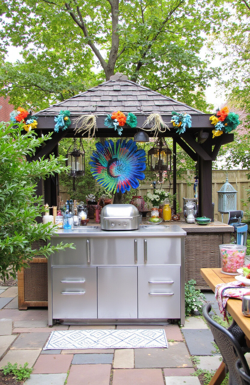 Add personality to your backyard kitchen with outdoor art. It’s a creative way to express yourself and enhance your space.