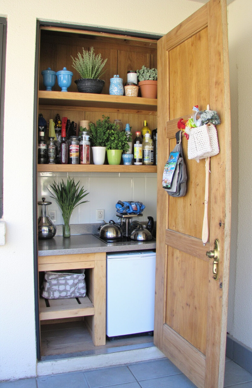 Keep your backyard kitchen tidy with clever storage solutions. From cabinets to shelves, there are many ways to organize.