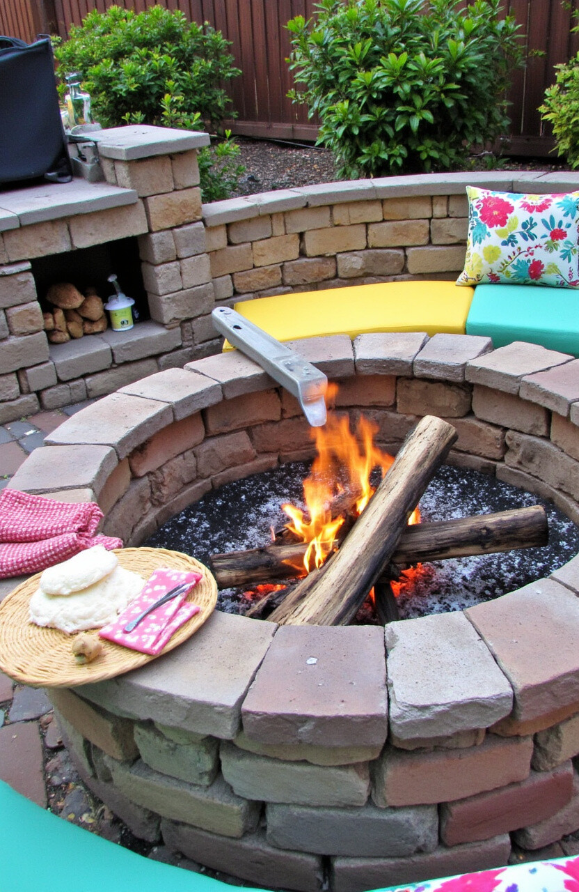 To personalize, add colorful cushions to the seats around the pit. Trendy designs include rustic and bohemian styles. The fire pit offers warmth and a rustic cooking experience, making it a must-have for any backyard oasis.