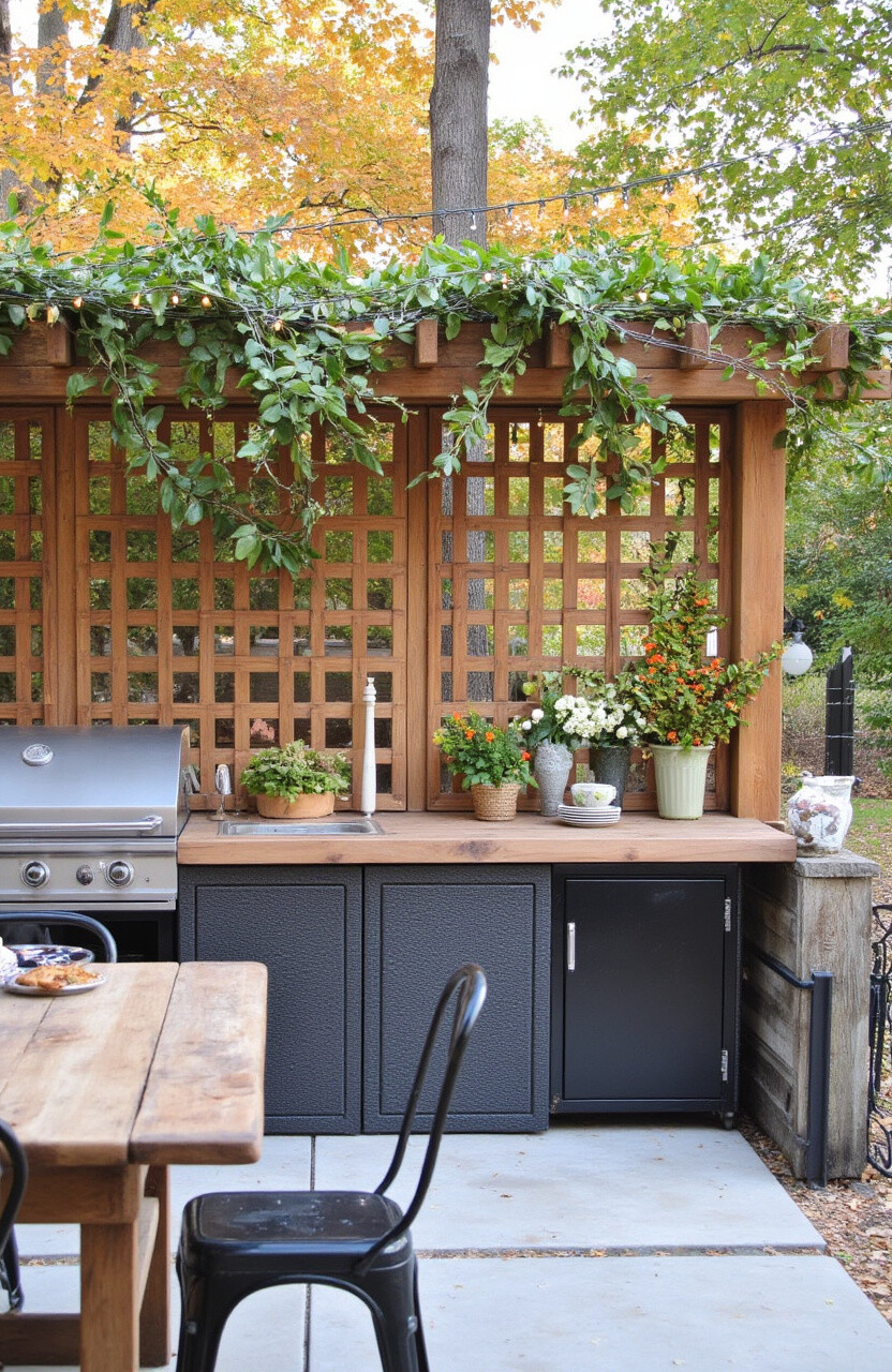 Imagine picking fresh herbs right from your garden while grilling. A small herb garden adds flavor and fragrance to your outdoor kitchen.