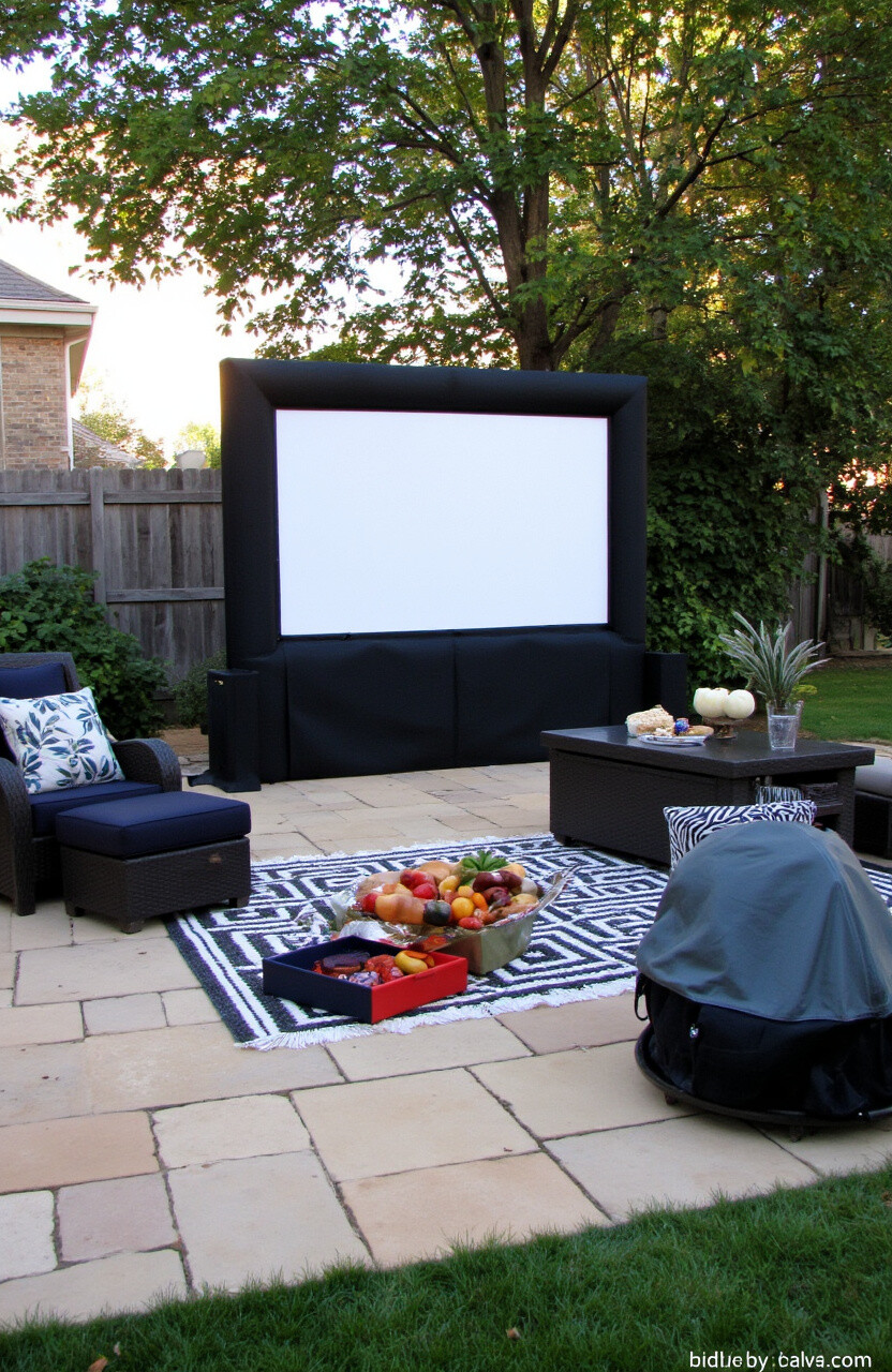 Use comfy outdoor seating and cozy blankets to enhance the experience. This setup turns your backyard into a multifunctional entertainment space.