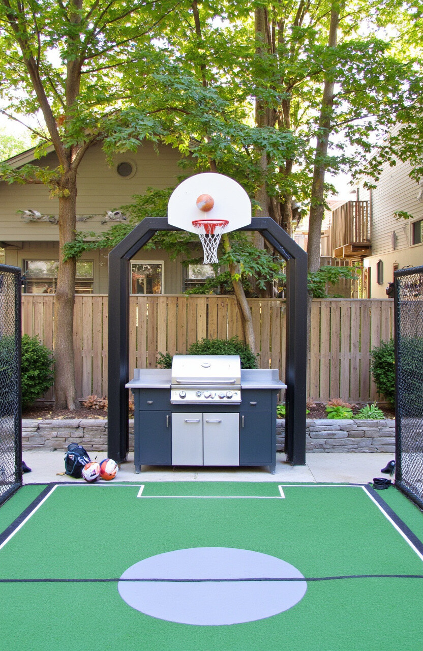 For sports enthusiasts, create a backyard paradise complete with a grill kitchen and sports area. Install a basketball hoop or set up a mini soccer field.