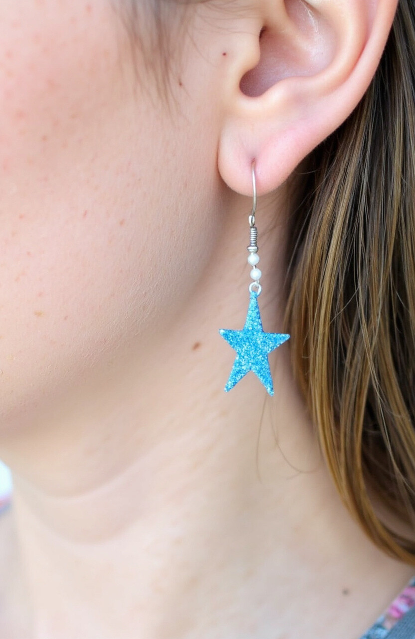 Shine bright with glittering star earrings! Picture twinkling stars hanging from your ears, adding a touch of magic to your outfit. They’re ideal for nighttime events or when you want to feel a bit magical.