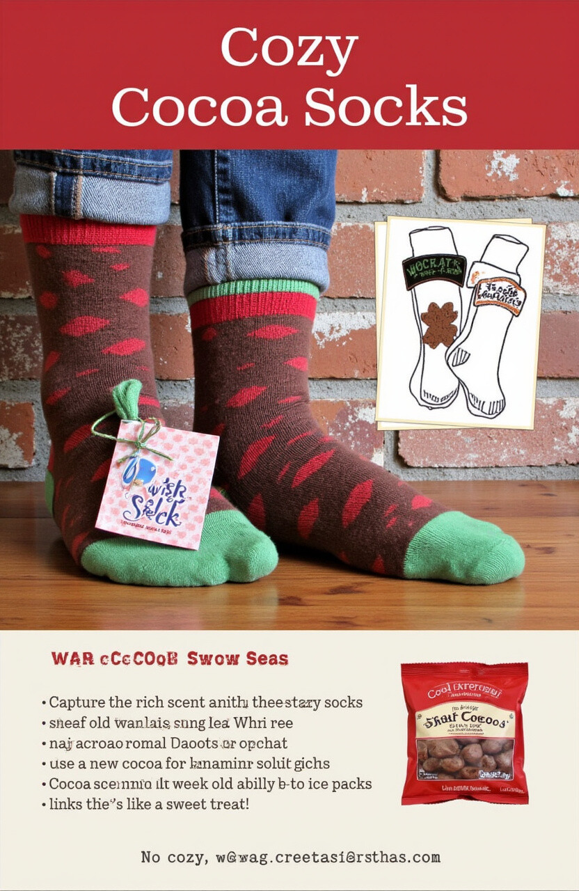 Capture the rich scent of cocoa with these cozy socks. Use cocoa powder for a delightful chocolate aroma. It’s a warm cup of cocoa for your feet!