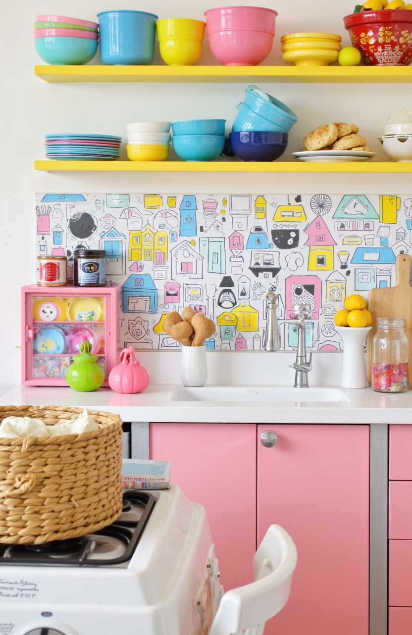 Personalize with your favorite colors and patterns. You can even paint your cabinets in bold hues for a pop of personality. While colorful décor can be playful, ensure the space doesn’t feel chaotic by balancing it with neutral tones.