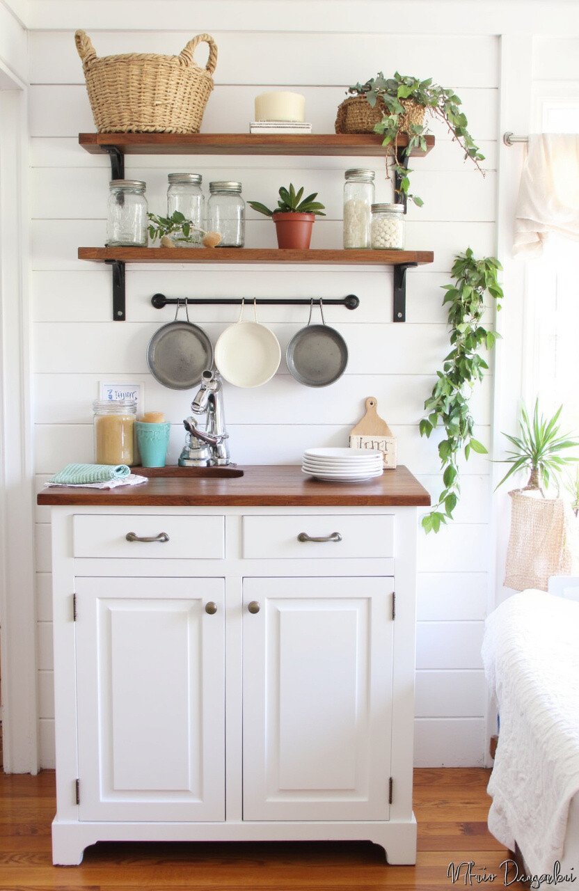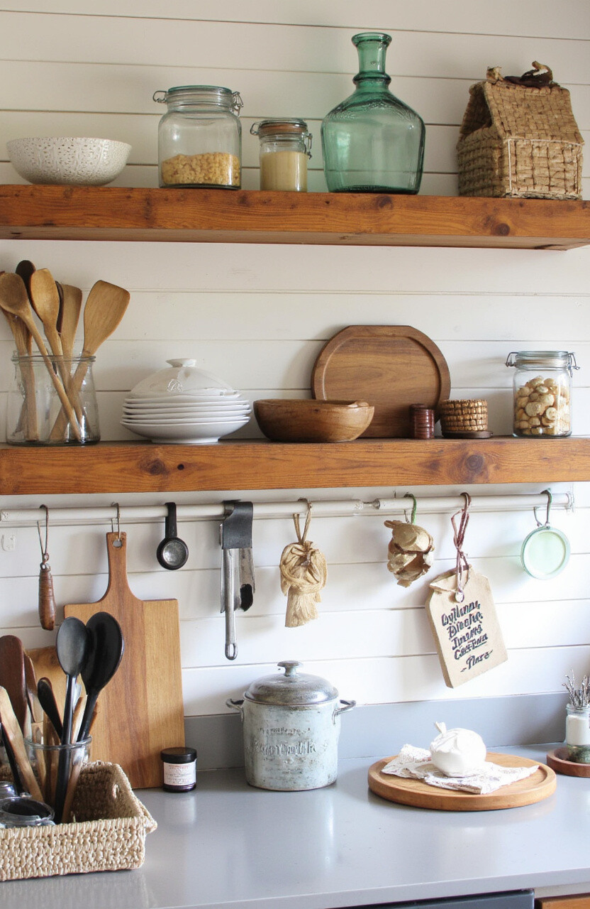 Benefits include a timeless appeal and a warm, inviting atmosphere. Use reclaimed wood for shelving and add vintage utensils for authenticity. You can even hunt for second-hand treasures at flea markets, making it a budget-friendly option.
