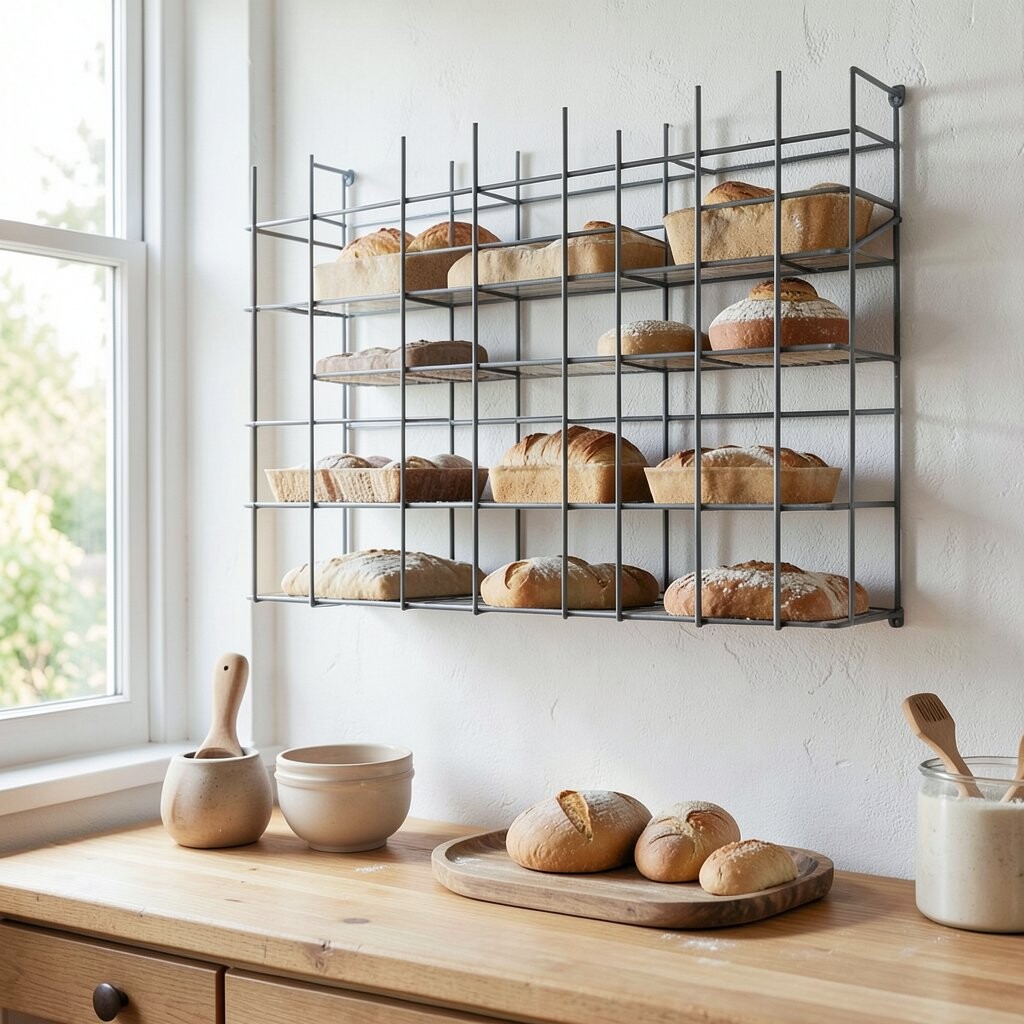 A metal grid offers a modern and minimalist way to organize your baking station. Hang tools, notes, or photos with clips.
