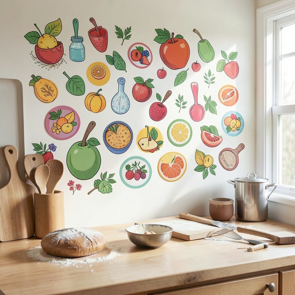 Wall decals are a quick and easy way to add fun to your kitchen. Choose baking-themed stickers like cupcakes, rolling pins, or whisks.