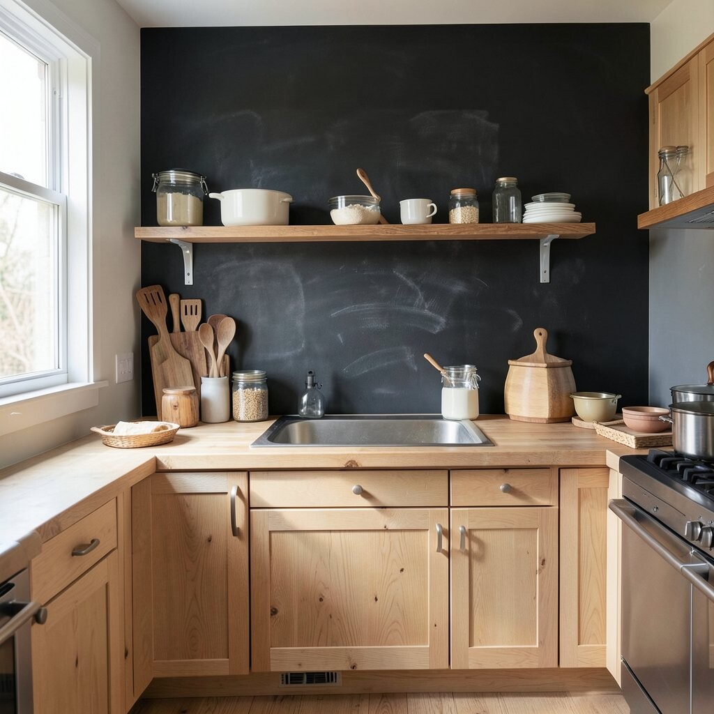 Picture a wall where you can jot down your favorite recipes or doodle cupcakes and cookies. A chalkboard wall is not only fun but also a practical choice for keeping track of grocery lists or baking schedules.