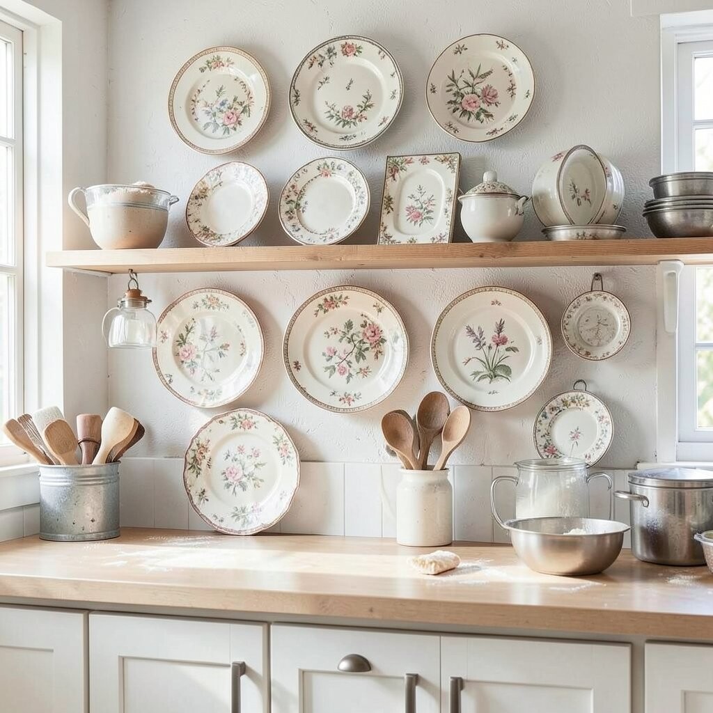 Old plates have stories to tell. Why not display them on your kitchen wall? A collection of vintage plates adds charm and character.