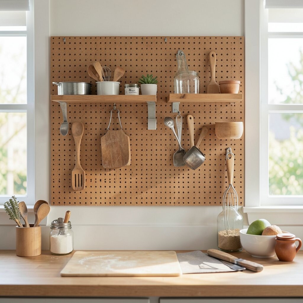 Imagine a wall that adapts to your every need. A pegboard organizer can hold spatulas, measuring cups, and even small pots.