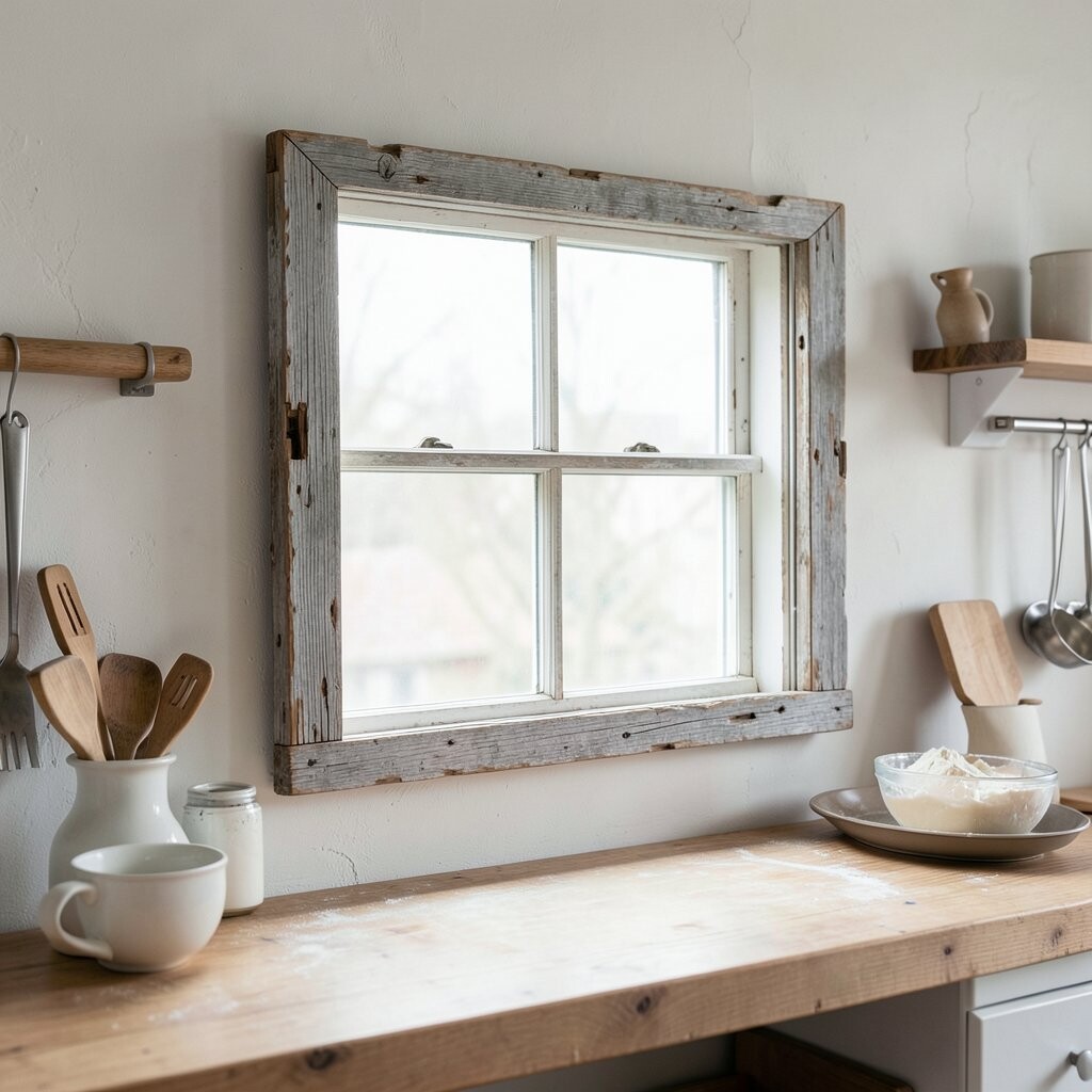 Old window frames can be repurposed into charming wall decorations. Hang them as is, or add photos or fabric for a unique touch.