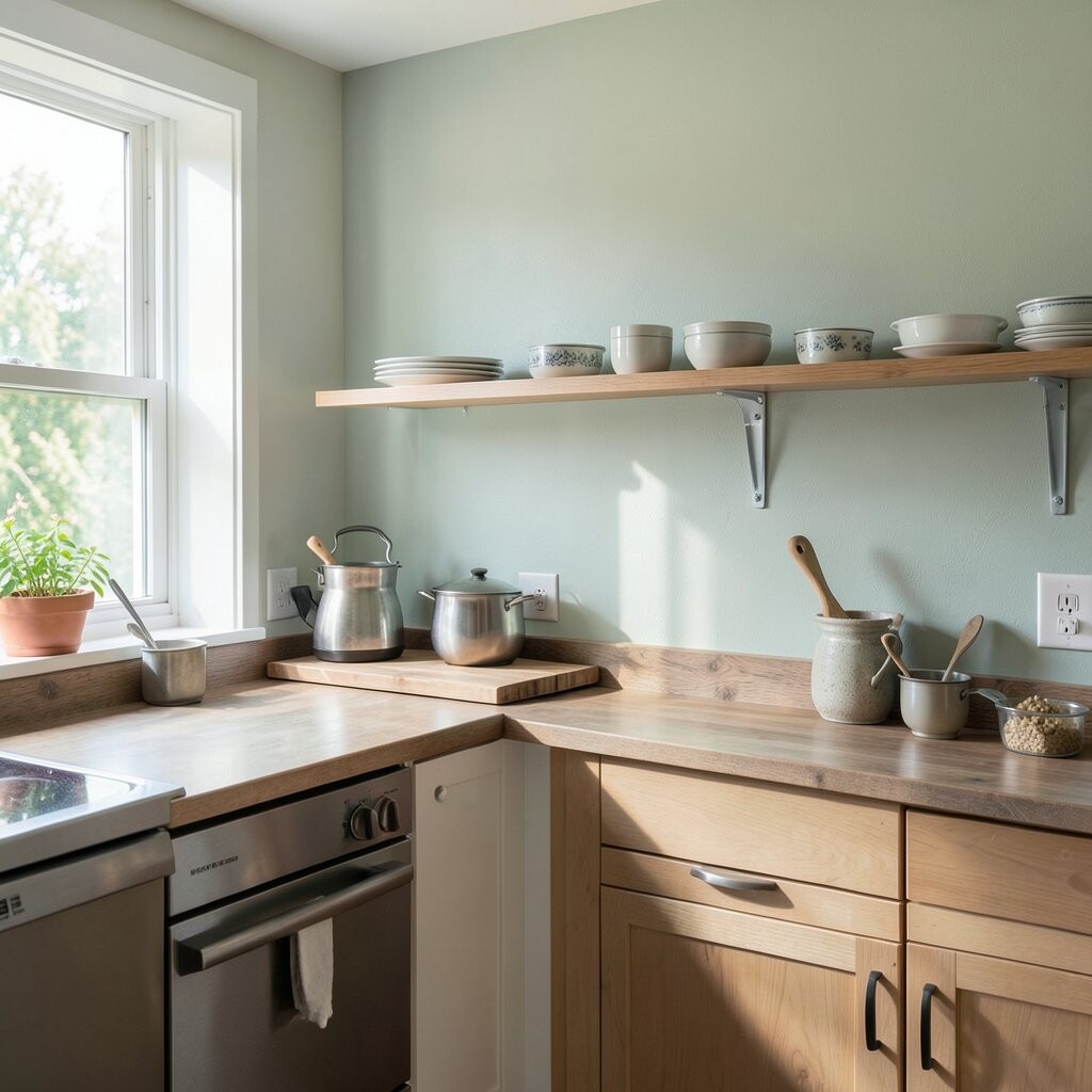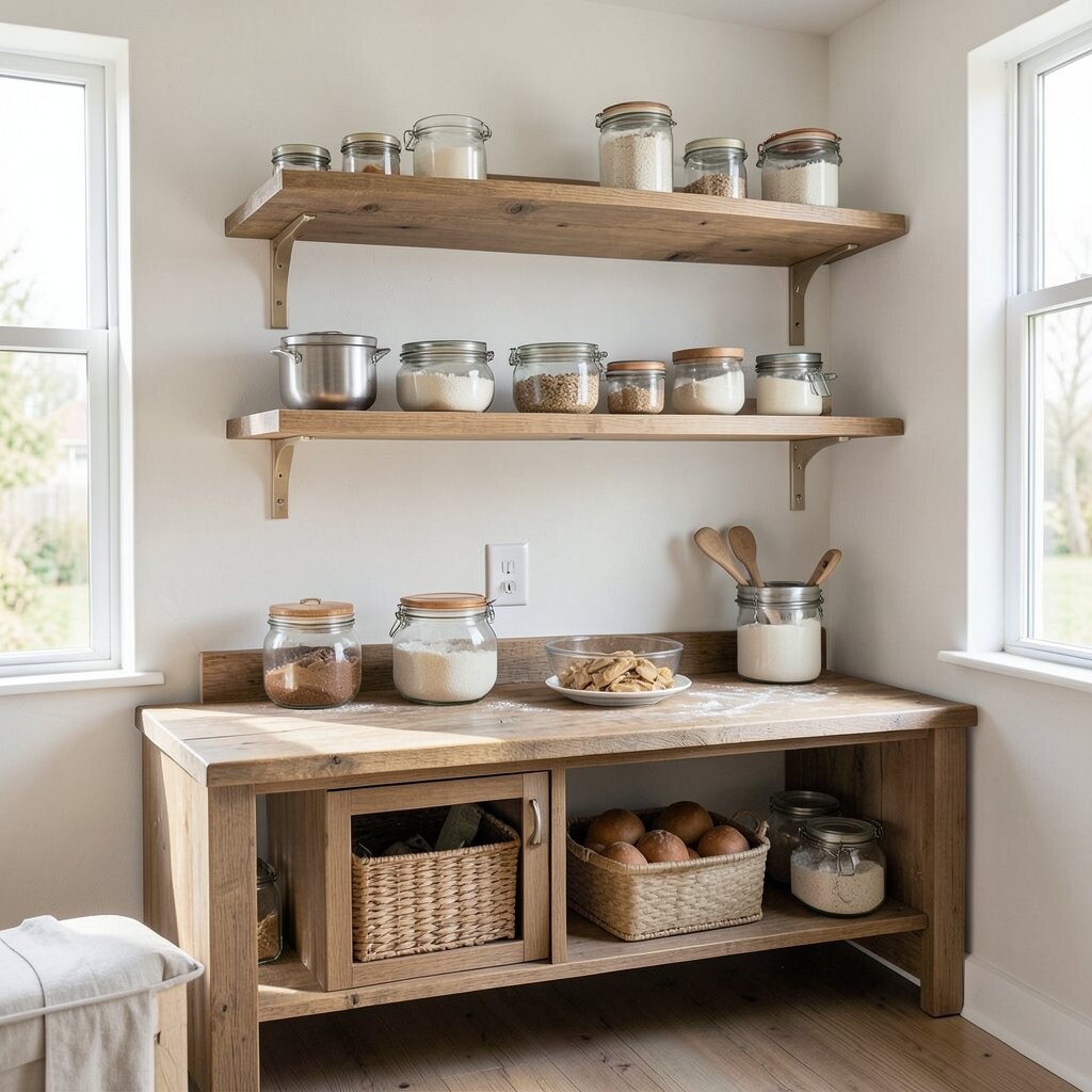 Ever thought about showcasing your lovely baking tools? Floating shelves are perfect for displaying colorful bowls, mason jars filled with flour, and your favorite cookbooks.