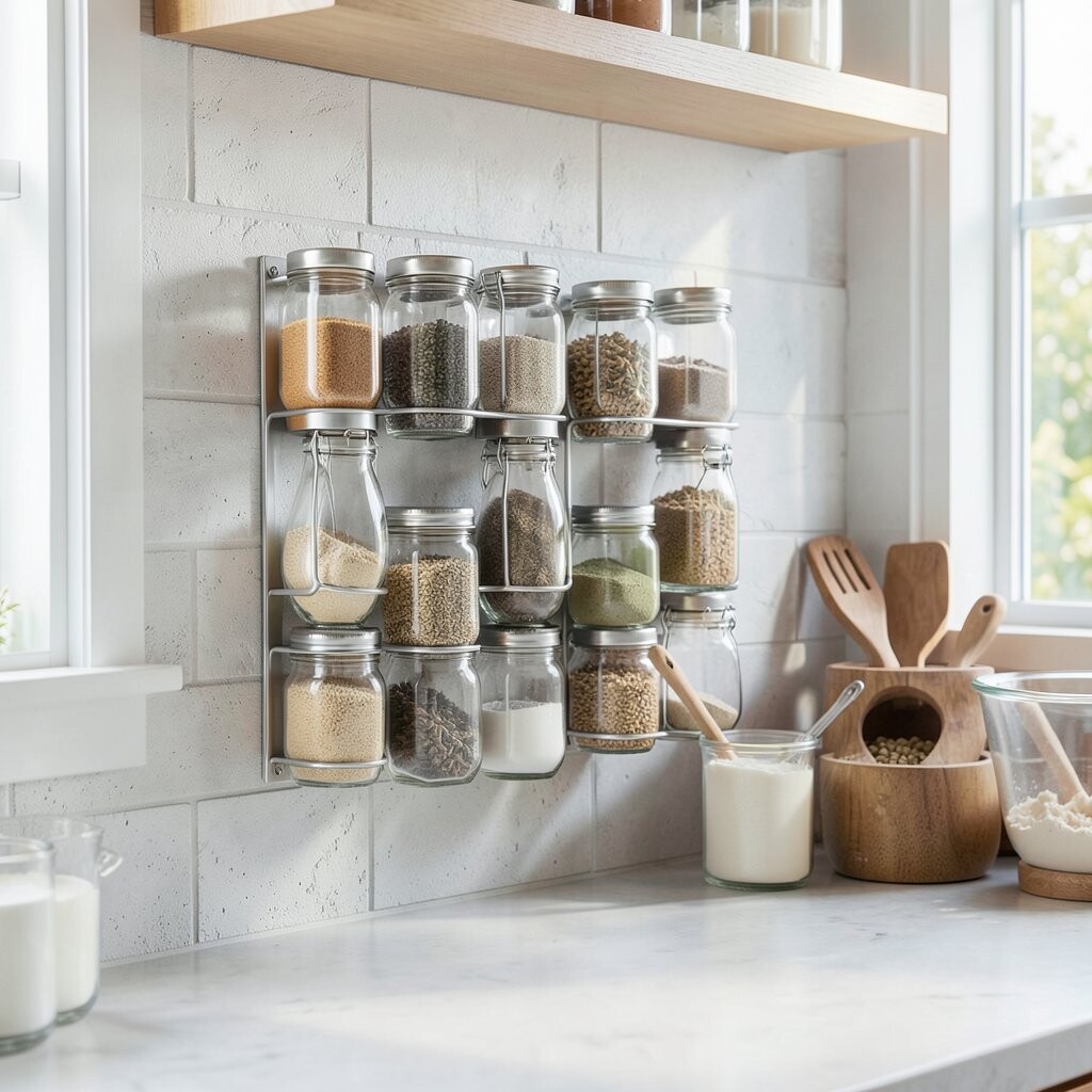 Imagine a magnetic spice rack where jars cling to the wall like magic. It keeps spices within reach while saving counter space.