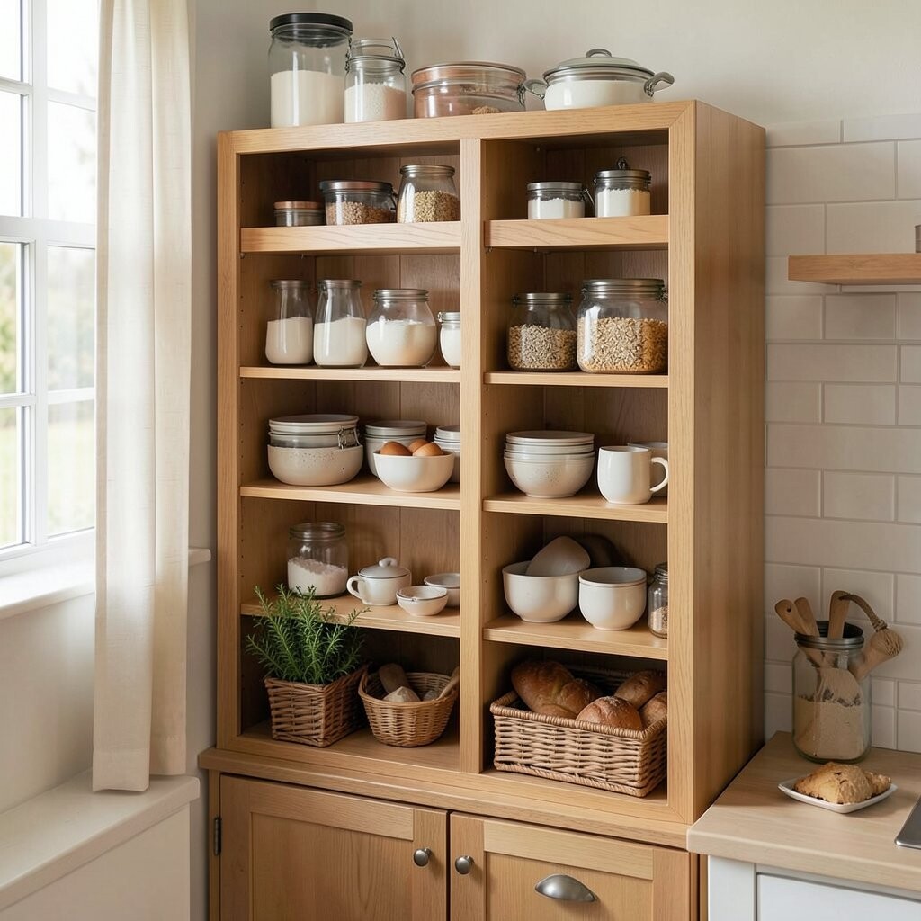 It adds both organization and beauty, giving your kitchen a charming and homely feel.