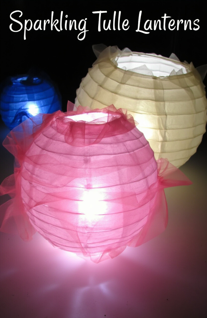 Wrap tulle around simple paper lanterns and secure it with glue or tape. You can add string lights inside for extra sparkle.