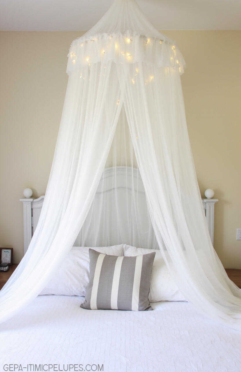 A tulle bed canopy creates a serene, princess-like sleeping space. Drape it over your bed for a cozy, enchanting retreat. It feels like sleeping under a soft, protective net of dreams.