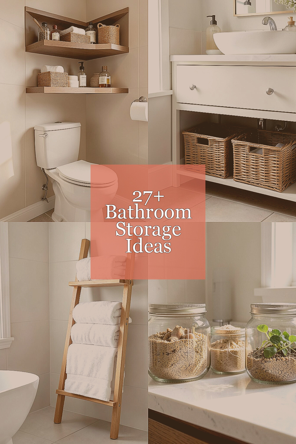 Sometimes the best bathroom storage is a mix of a few small ideas that work together. You might use shelves, baskets, jars, and hooks to make the room both pretty and useful.