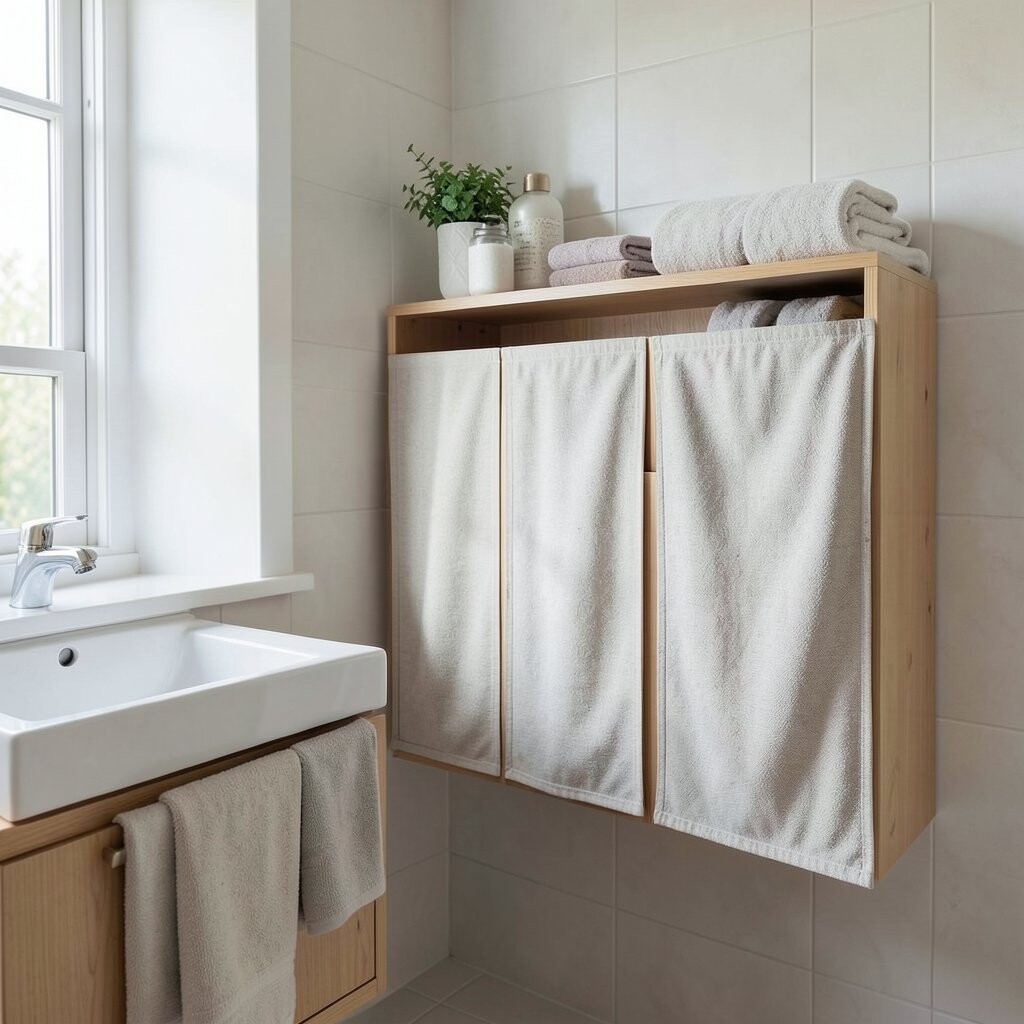 This is a clever choice for very small bathrooms where every inch matters. It keeps extra things out of sight while still making them easy to reach.