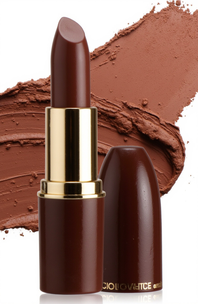 Chocolate lipstick is warm and inviting, perfect for a cozy and sophisticated look.
