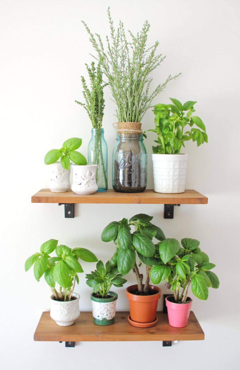 Create a refreshing and aromatic display by turning your bottle shelf into a miniature herb garden. Use small pots or jars to plant herbs like basil, mint, and thyme.