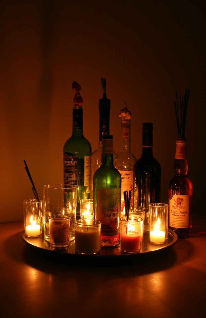 Create a warm and inviting atmosphere with candles placed in or around your bottles. Use scented candles for an added sensory experience.