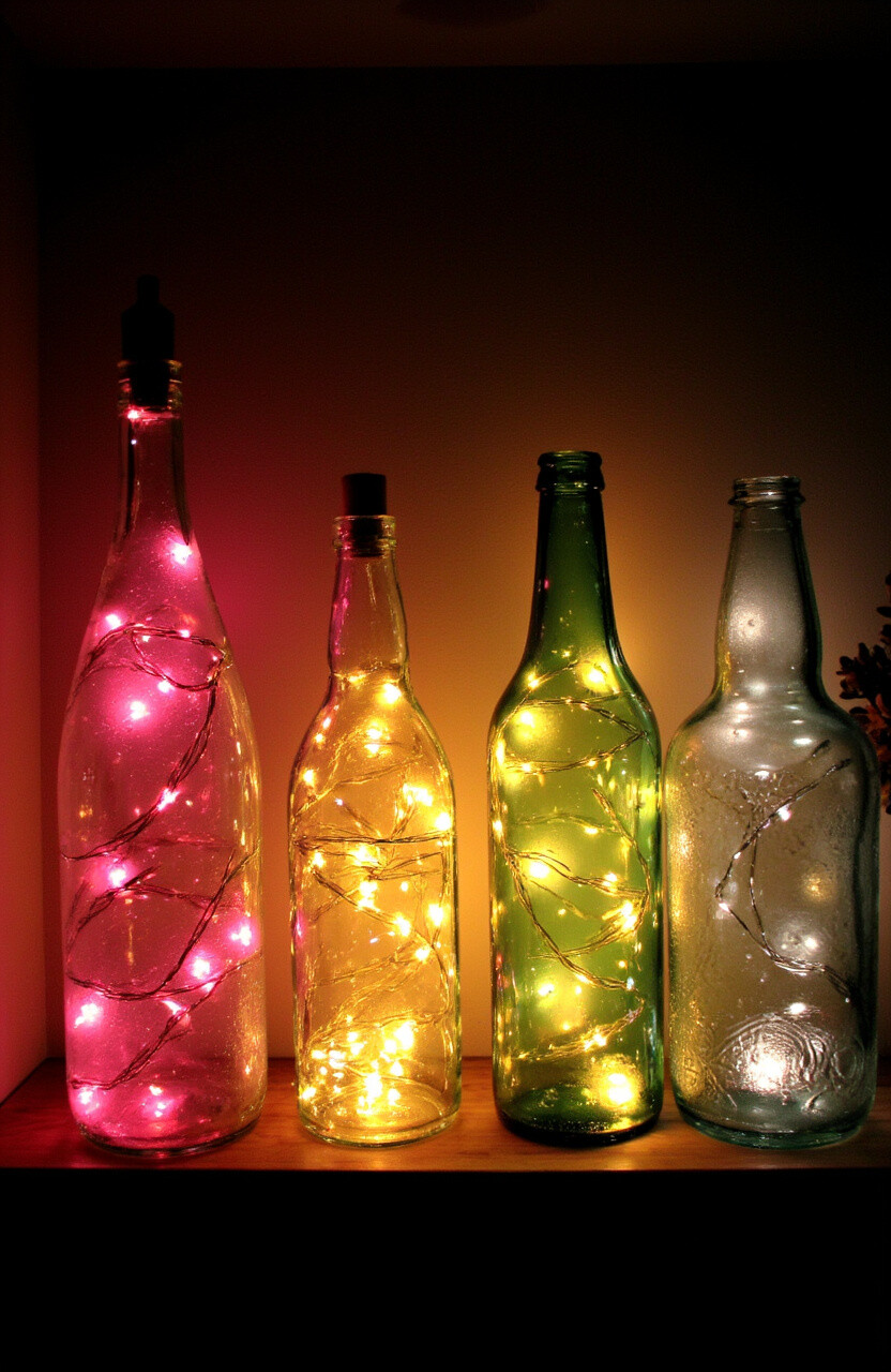 Bring a magical glow to your shelf with fairy lights. Place them inside clear bottles for a dreamy, twinkling effect.