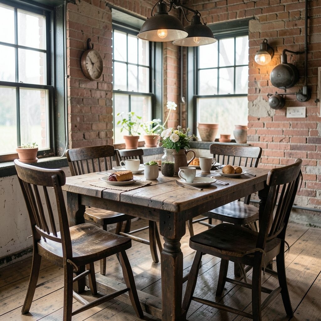 Combine vintage finds with industrial elements for a unique look. Think old metal chairs and a weathered table.