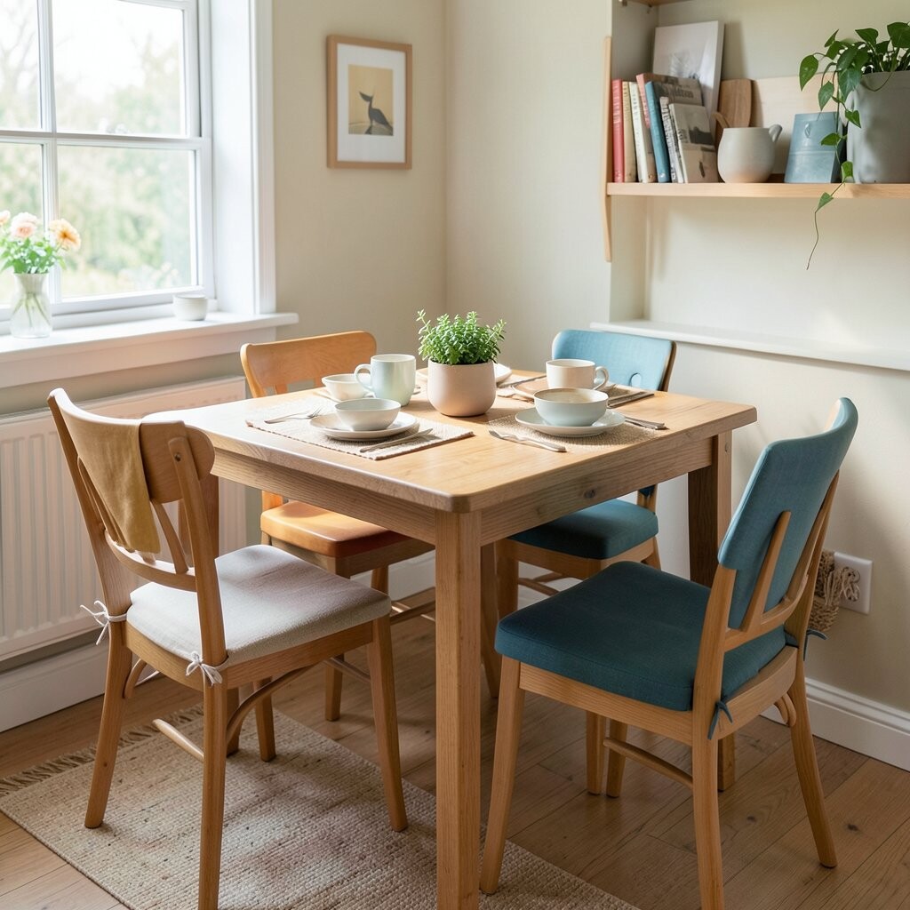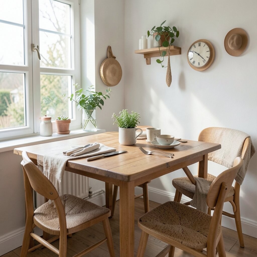 This idea is all about using that perfect little corner in your kitchen. Add a small round table, two comfy chairs, and some soft cushions. It’s like having a tiny café right at home!