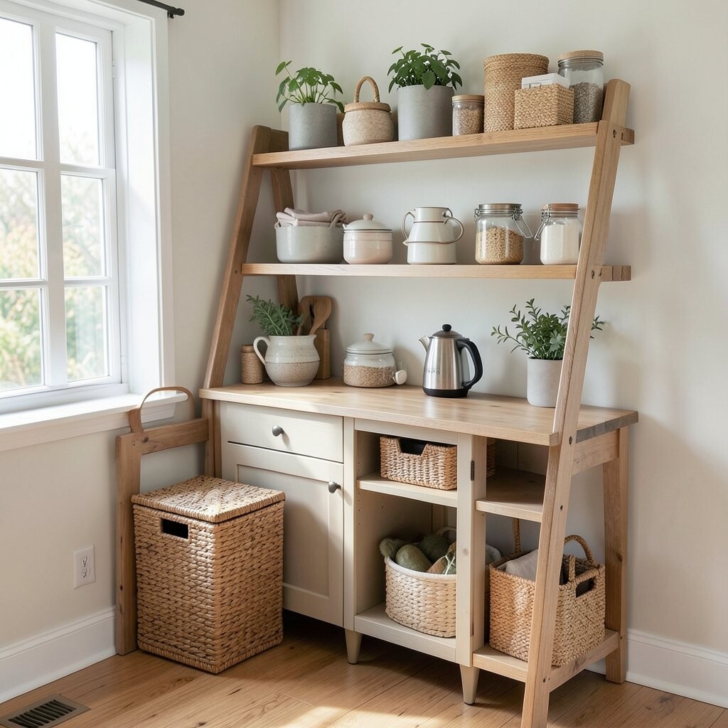 Decorative ladder shelves offer a trendy way to store and display items in your nook. They add height and visual interest to the space.