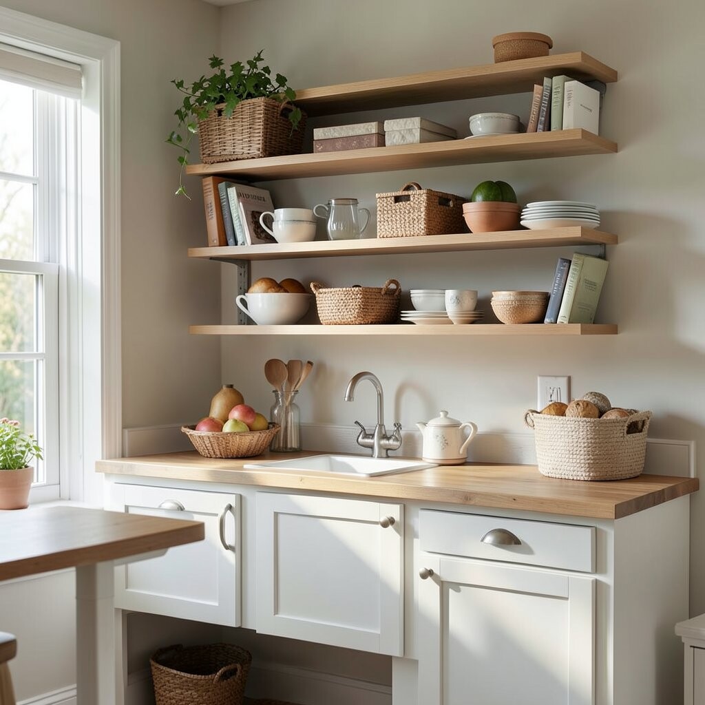 Open shelving can create a light, airy feel in your nook. It’s perfect for displaying your favorite dishes and decorative items.