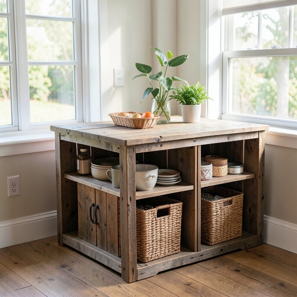 Rustic crates can add character and charm to your breakfast nook. Use them for storing anything from table linens to cookbooks.