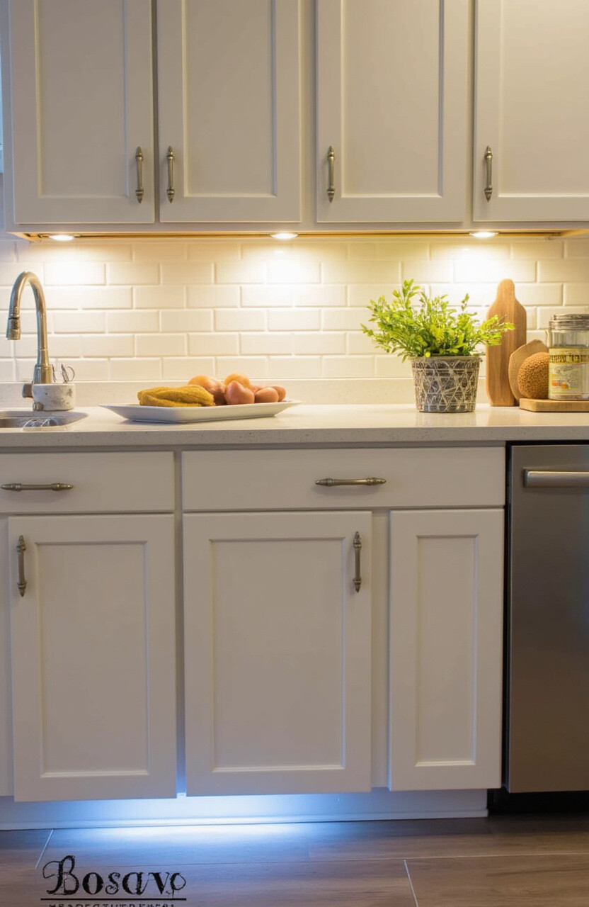 This type of lighting is both functional and decorative, making your kitchen look modern and chic. Use LED strips for a long-lasting and energy-efficient option.