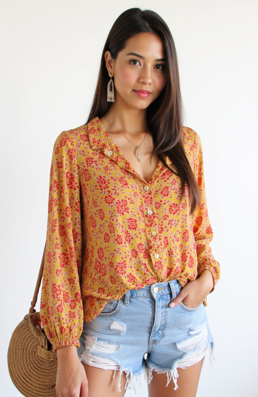 Pair it with jeans or a skirt for an easy, breezy vibe. A floral blouse is versatile and can be worn in any season. Look for light fabrics like cotton or silk for maximum comfort.