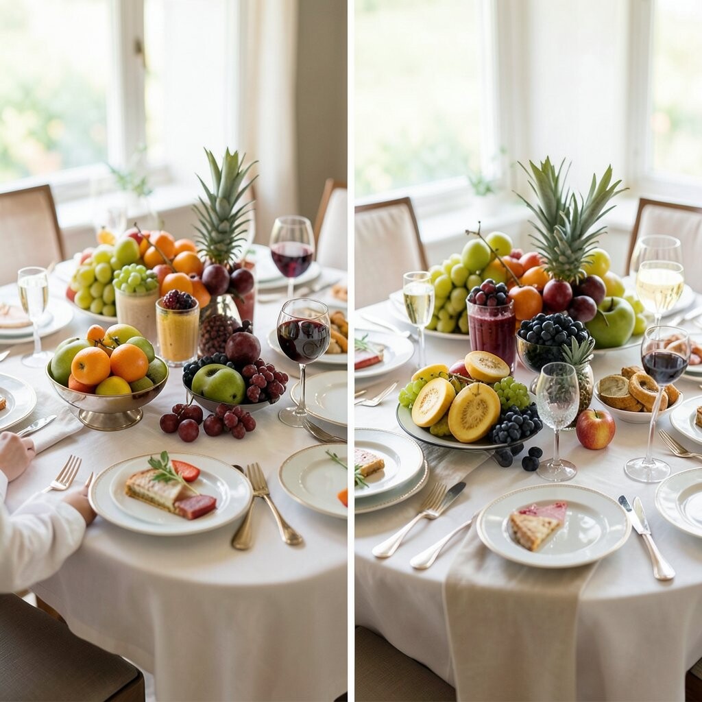 Decorate with seasonal fruits for a fresh, colorful table. Think of oranges in winter or berries in summer.