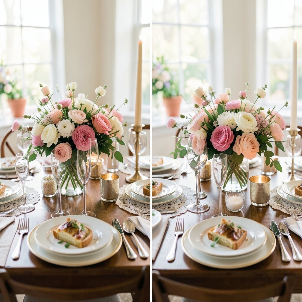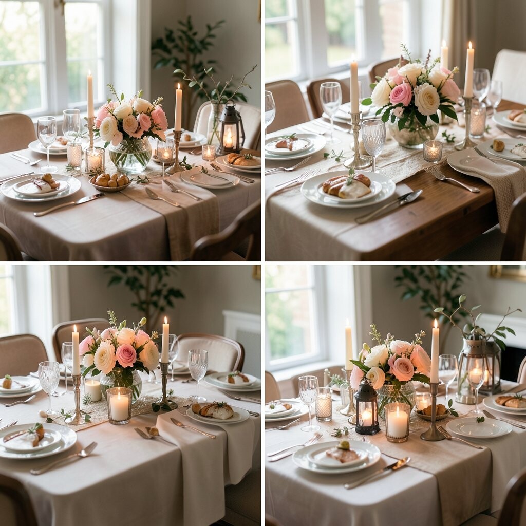 Picture a lovely bouquet of fresh flowers as the centerpiece. It’s a classic choice that instantly brightens up any table. Plus, the fragrance adds a touch of nature indoors.