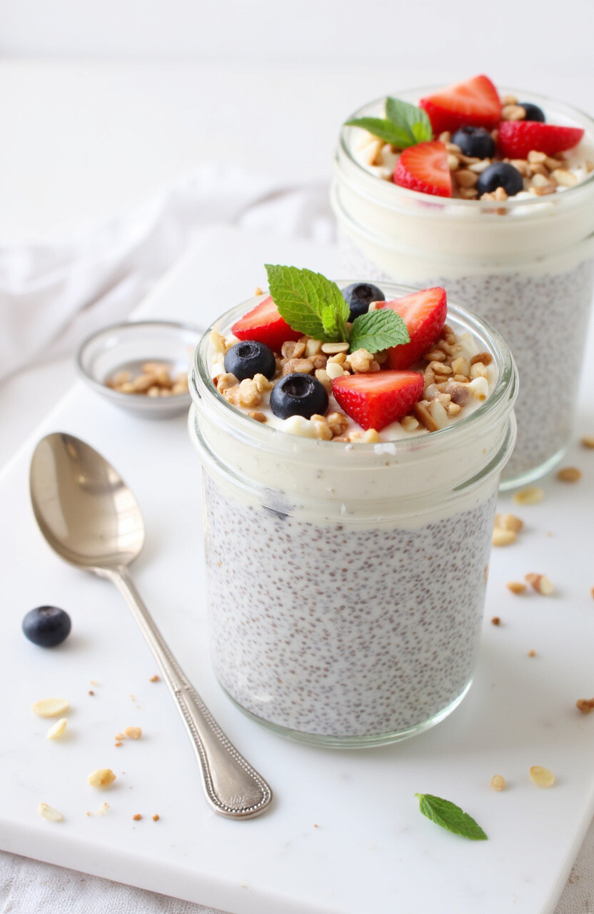 Chia seed pudding is a healthy and trendy option for a light brunch dish. It’s creamy, nutritious, and can be made in advance.