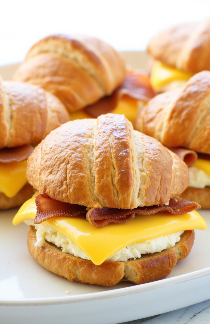 Flaky, buttery croissants make the perfect base for a delightful brunch sandwich. Fill them with eggs, cheese, and bacon, or go gourmet with brie and prosciutto.