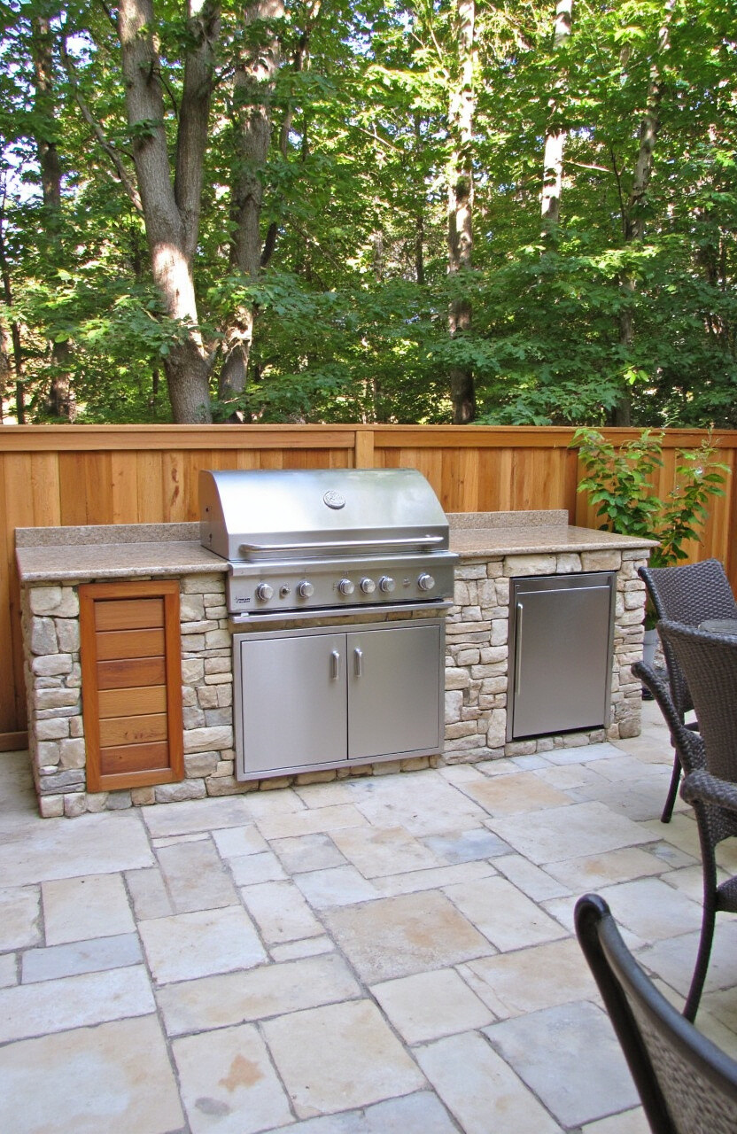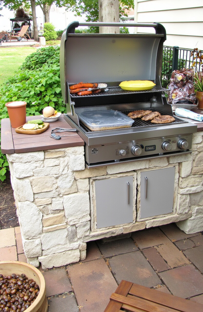 A built-in bar area next to your grill adds a touch of luxury. It creates a dedicated space for drinks and socializing.