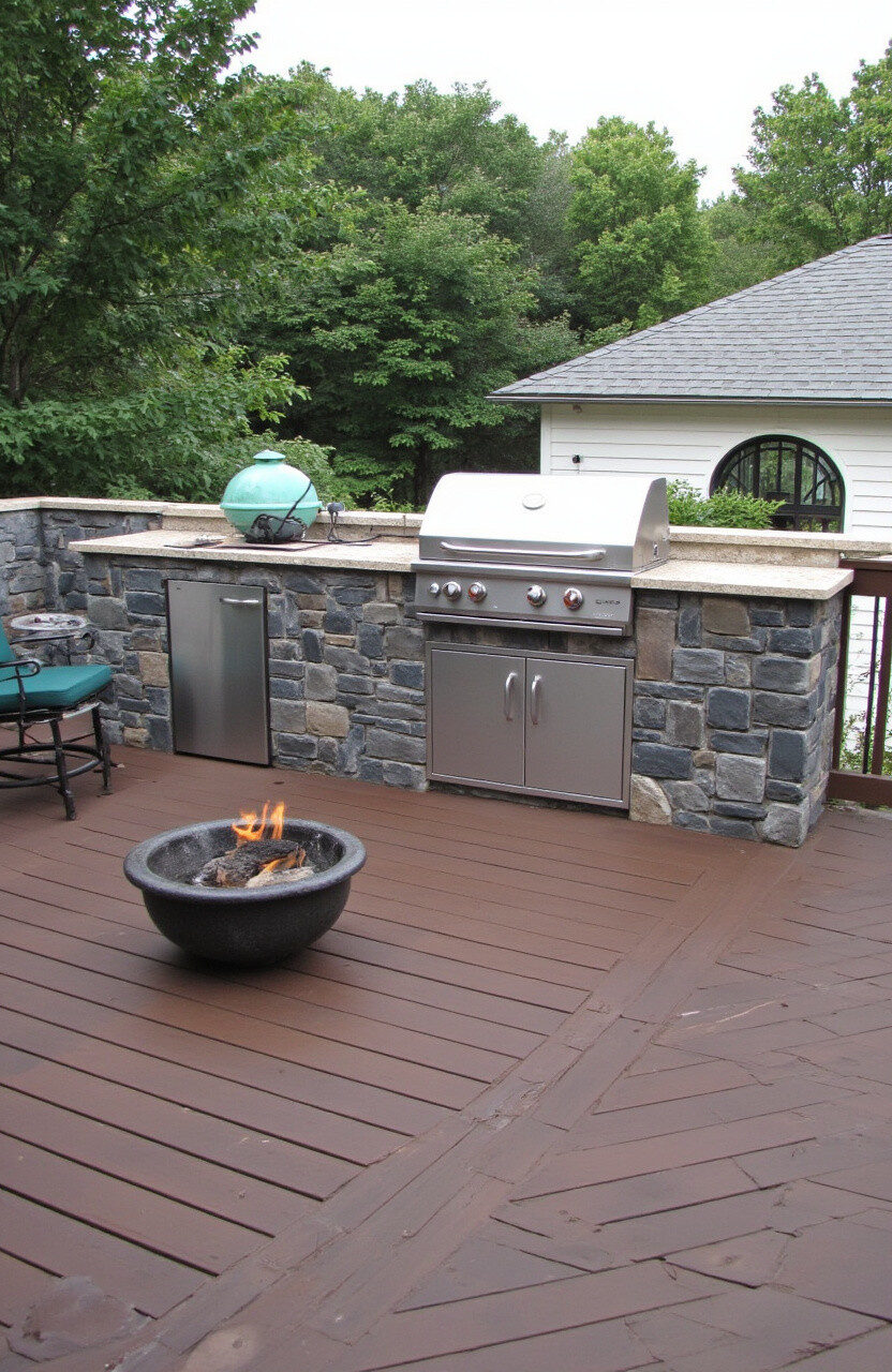 A combination of stone and wood creates a stunning visual contrast. This setup brings warmth and texture to your deck kitchen.