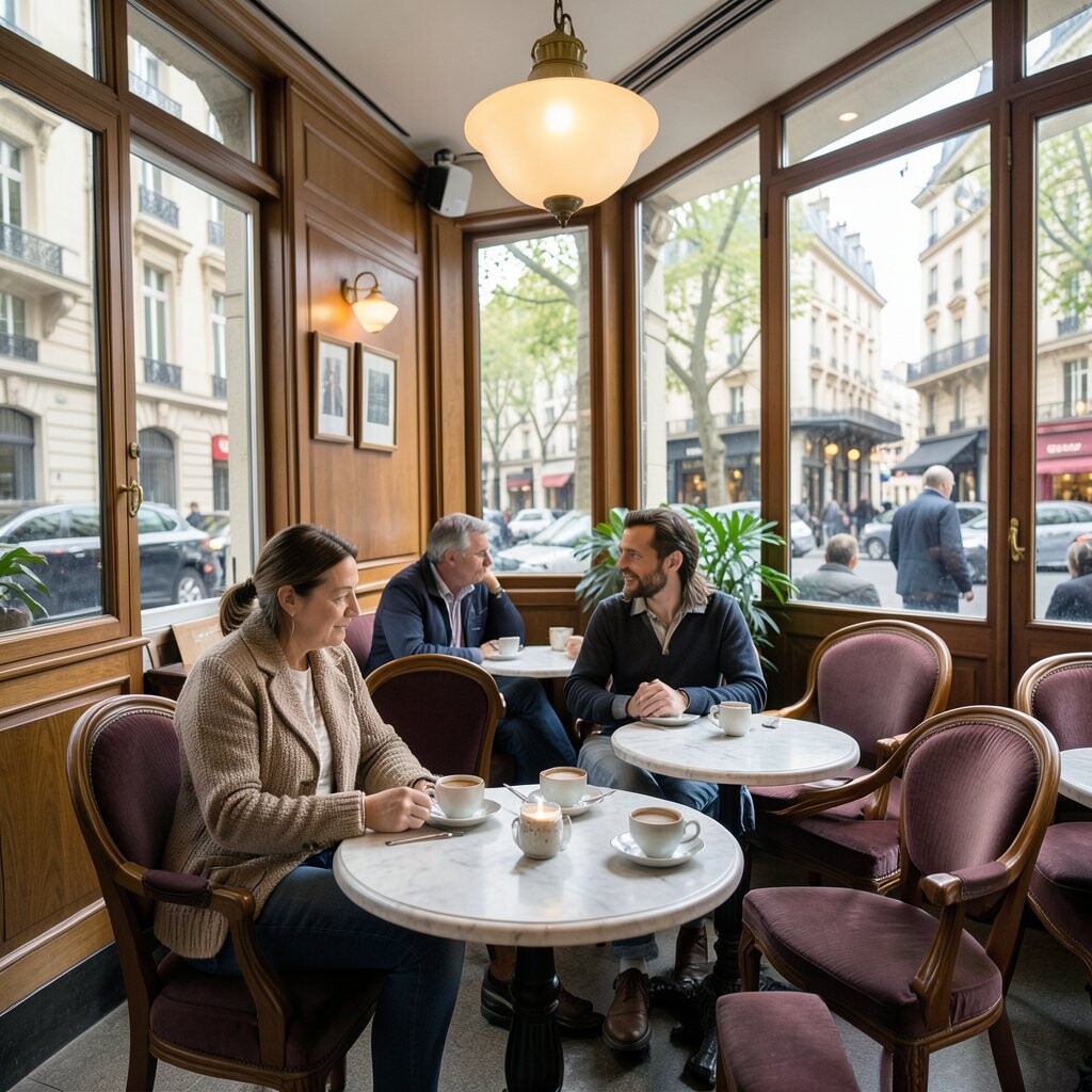Imagine sitting by the Seine in a chic Parisian café. Small round tables, wicker chairs, and a menu board written in French.